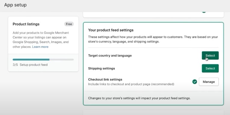 5. Select your target country, language, and shipping settings