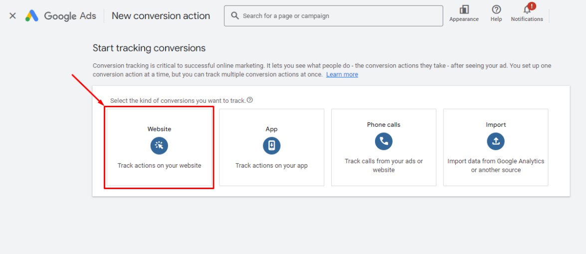 Create a conversion action in Google Ads