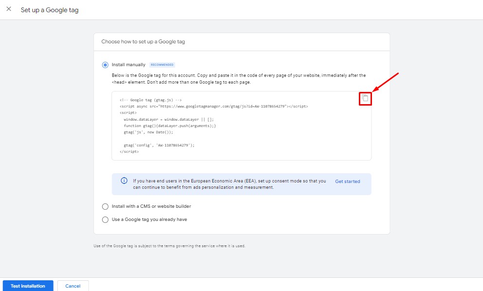 Set up Google Ads conversion tracking manually with Google tag