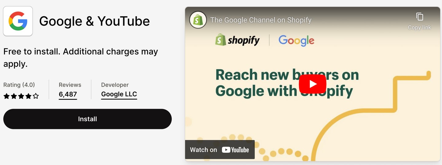 1. Find and install Google & YouTube app from the Shopify app store